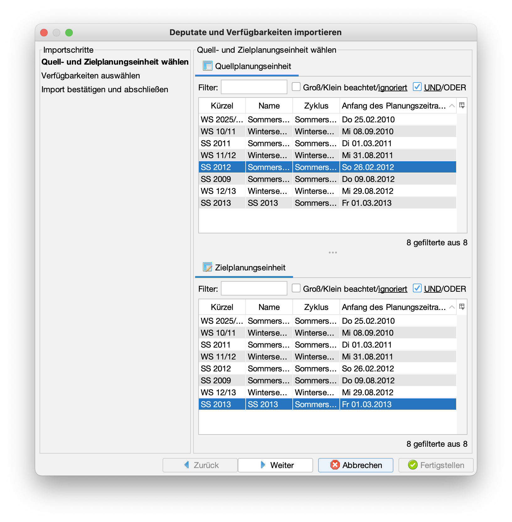 Die Planer müssen nicht für jede Planungseinheit alle Deputate und Verfügbarkeiten neu erstellen. Sie können Deputate und Verfügbarkeiten aus einer Planungseinheit in eine andere Planungseinheit übernehmen.