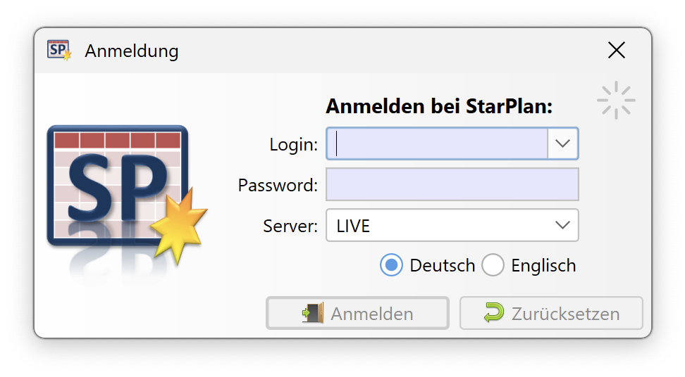 Während des Ladens der Anwendung erscheint zunächst das StarPlan-Symbol und dann folgendes Dialogfenster: